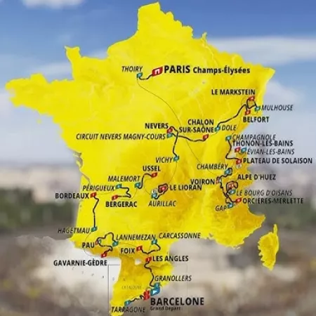 Haute-Savoie toujours, le 21 juillet, après une journée de repose au bord du lac Léman, contre-la-montre individuel de 26 km entre Évian-les-Bains et Thonon-les-Bains. Cette épreuve pourrait redistribuer les cartes du classement général à la veille des grandes ascensions.