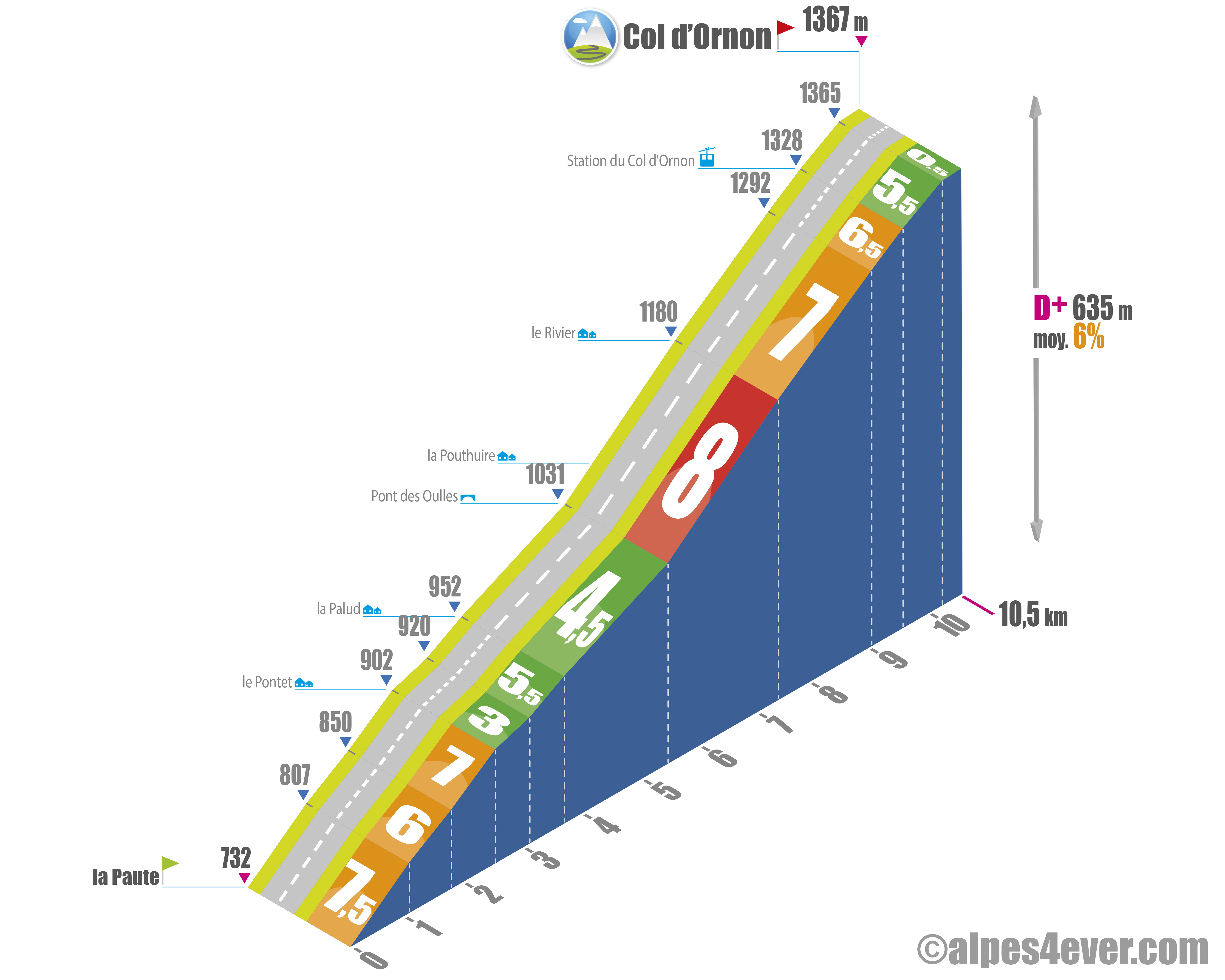 Les premiers 2,5 kilomètres, entre 6 et 7,5 %, cèdent la place à une section plus douce, ponctuée de replats jusqu’au Pont des Oulles, idéale pour reprendre son souffle. Mais dès ce point, le col reprend de la vigueur, avec des pentes entre 6,5 et 8 %.