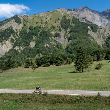 Au sommet, le col d’Ornon s’ouvre dans un cadre paisible et bucolique. L’espace est large, l’ambiance tranquille, et les panoramas superbes : d’un côté, le massif du Taillefer ; de l’autre, les cimes élancées des Écrins, au cœur de l’Oisans. Un col qui invite autant à la contemplation qu’à la reprise d’effort.
