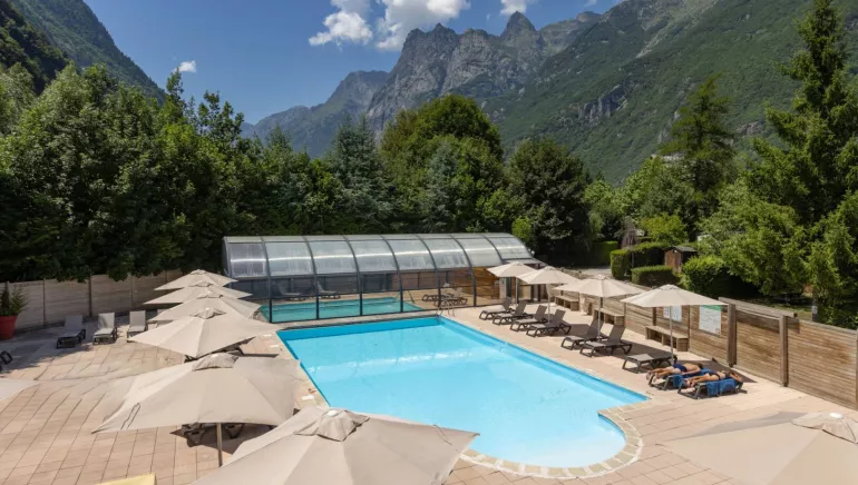 Le camping Le Château de Rochetaillée 4 étoiles Ciela Village au Bourg d’Oisans, propose piscine chauffée, mobil-homes confort et vue sur les Alpes. Idéal pour vacances en Isère, proche Alpe d’Huez, vélo et randonnée en montagne.