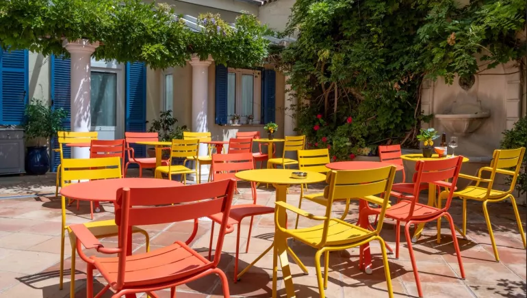 Le patio fleuri et ombragé vous accueille pour un délicieux petit-déjeuner buffet ou pour un apéritif sympathique après une journée de shopping, d’excursion ou tout simplement de plage (seulement à quelques pas). Parkings publics à proximité. Petits groupes de 25 personnes maximum acceptés selon disponibilités.Caractéristiques