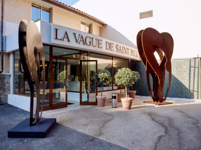 La Vague de Saint-Paul propose 50 chambres et suites, un restaurant, des salles de séminaire, un spa, une belle piscine extérieure, un terrain de pétanque, un terrain de tennis, le tout à deux pas (2.5km) du célèbre village médiéval de Saint-Paul de Vence.Cap sur un havre de paix de la Côte d’Azur. Ici, le cadre des années 70 cache une décoration design et moderne. Le mobilier, luxueux et contemporain, s’harmonise très bien avec le blanc immaculé des murs, le mélange de couleurs de la décoration et la verdure du parc. D’un souffle, on divague dans un autre temps.
