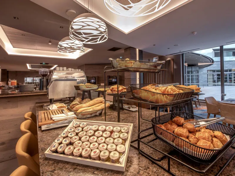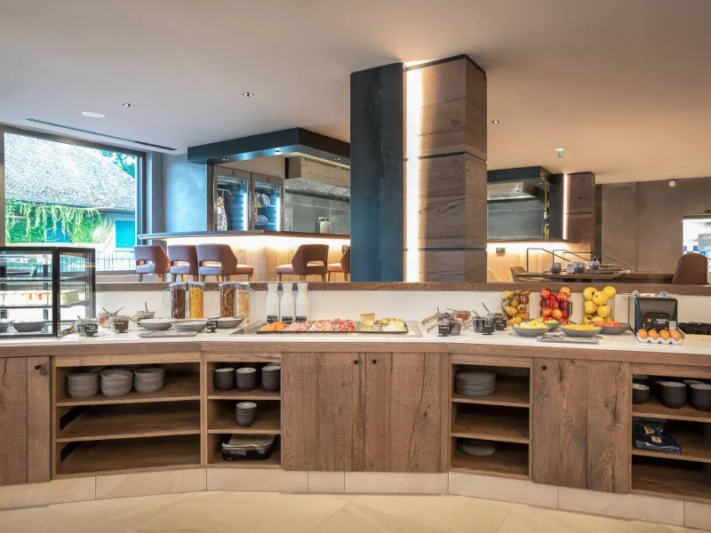 Tous les matins, vous pourrez savourer un petit-déjeuner buffet sur place. L’hôtel possède un bar, Bacari, ouvert toute la journée et proposant une carte de cocktails et de snacking et un restaurant Lona ouvert pour le déjeuner et le dîner, agrémenté d’une terrasse donnant sur le lac d’Annecy.