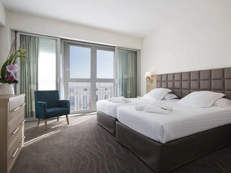 En plein centre ville, à 200 mètres de la station de tramway, 130 chambres et suites, un bar-restaurant panoramique et 3 terrasses, une piscine et un bain à remous extérieurs en saison, un spa et 5 salles de séminaire. L'hôtel dispose également d'une salle de fitness avec sauna.Il accueille touristes et voyageurs depuis plus d’un siècle dans le respect et la passion du métier d' hôtelier transmis depuis 4 générations. Les voitures sont aussi accueillies au garage souterrain, avec bornes de recharge.